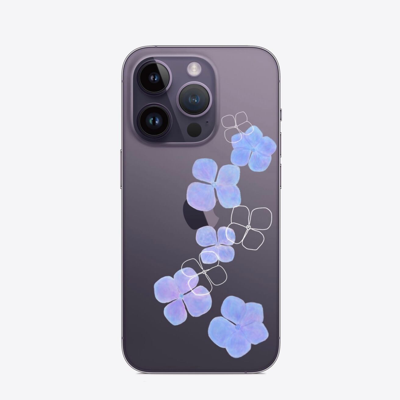 アジサイの押し花風スマホケース(iPhone14 Pro)