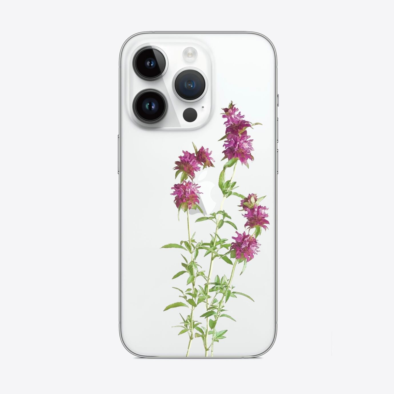 ほぼ実物大のお花を描いた、押し花風イラストのスマホケースです。